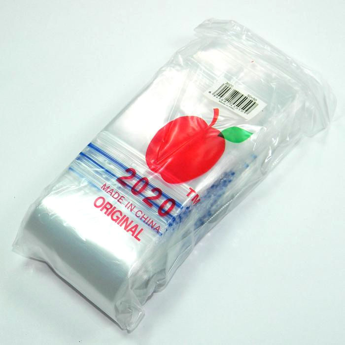 Apple brand clear resealable zip lock bags. Made up of superior quality 2.5 Mil thick plastic film. 100 pieces each package. size of 50 mm X 50 mm. It weights about 51g per 100 pieces.